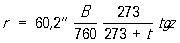 где коэффициент 60,2’’ называется постоянной Р.; В — атмосферное давление (в мм ртутного столба), t — температура воздуха (°С). Формулой можно пользоваться для светил с z < 70°. При точных расчётах принимают во внимание влияние на величину Р. не только температуры, давления, но и влажности воздуха, а также других метеорологических элементов нижнего слоя воздуха, для чего служат специальные таблицы.