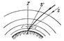В случае астрономической рефракции, когда луч, идущий от светила, проходит через всю толщу атмосферы, в которой плотность воздуха, а вместе с ней и показатель преломления в общем увеличивается на пути луча, его траектория всегда обращена выпуклостью к зениту (см. рис.); касательная AS' к ней проходит выше направления AS к действительному месту светила. Разность между истинным z и измененным рефракцией z’ зенитными расстояниями называется углом рефракции r, или просто рефракцией. Р. равна нулю в зените и возрастает с увеличением зенитного расстояния. Простейшая теория, в которой не учитывается кривизна слоев атмосферы равной плотности, приводит к формуле: