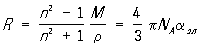 где М — молекулярная масса вещества, r — его плотность, NA — Авогадро число. Выражение (*) для Р. м. является эквивалентом Лоренц — Лоренца формулы (с теми же ограничениями на применимость), но во многих случаях более удобно для практических приложений. Часто Р. м. можно представить как сумму «рефракций» атомов или групп атомов веществ, составляющих молекулу сложного вещества, или их связей в такой молекуле. Например, Р. м. предельного углеводорода