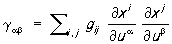 Это приводит к определённому закону преобразования коэффициентов gij как компонент дважды ковариантного тензора (см. Тензорное исчисление); он называется метрическим тензором риманова пространства.
