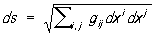 , когда X, Y приближаются к А. Отсюда следует, что в произвольных координатах расстояние между близкими точками (xi) и (xi + dxi), или, что то же самое, дифференциал длины дуги кривой, задаётся выражением