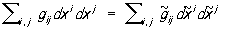 (она называется также метрической формой, или просто метрикой, R и является по своему определению положительно определённой). Возможность преобразования координат обусловливает то, что одно и то же риманово пространство в разных координатах имеет разные выражения метрической формы, однако её величина (вследствие своего геометрического смысла как квадрата элемента длины дуги) при преобразовании координат от xi к