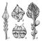 Мегаспорофиллы саговников: 1 — Cycas circinalis; 2 — Cycas revoluta; 3 — Macrozania peroffskyana; 4 — Ceratozanna mexicana.