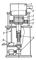 Рис. 4. Схема рабочей камеры СВЧ печи для сушки керамической шихты: 1 — неподвижный колпак; 2 — волновод; 3 — открытый резервуар, наполненный водной керамической суспензией; 4 — пазы, наполненные водой с целью защиты от СВЧ излучения; 5 — съемное дно; 6 — электромеханический привод; 7 — трубка, по которой стекает вода из-под колпака при конденсации испарившейся влаги; 8 — бачок, в котором расположено устройство, отключающее СВЧ генератор после окончания сушки шихты.