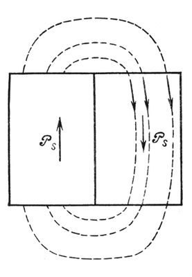Рис. 4. Взаимодействие электрического поля Е одной части образца со спонтанной поляризацией другой его части.