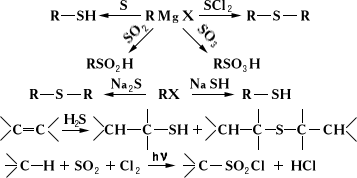 Основные методы синтеза С. с. основаны на реакциях органических соединений с элементарной серой или её простейшими неорганическими соединениями: