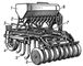 Сеялка, машина для равномерного посева семян с.-х. культур и трав с заделкой их в почву на необходимую величину; для высева семян лесных культур в лесопитомниках; внесения в почву минеральных удобрений. По способу посева С. разделяют на рядовые (рис. 1) для посева семян сплошным рядовым, узкорядным, широкорядным и ленточным способами; квадратно-гнездовые (см. Кукурузная сеялка) для заделки группы (гнёзд) семян в вершины квадратов (или прямоугольников); гнездовые для размещения гнёзд семян в рядках; пунктирные, или однозерновые (рис. 2), для широкорядного посева и размещения семян в ряду на одинаковом расстоянии одно от другого; разбросные для рассева семян и удобрений (например, семян трав при улучшении естественных кормовых угодий) по поверхности поля. Различают С. универсальные и специальные. Универсальные С. применяют для высева семян различных культур (например, зерновыми и зернотравными С. можно высевать семена зерновых, бобовых и масличных культур, семена трав, лубяных культур и др.). Специальные С. (свекловичные, хлопковые, кукурузные, овощные и др.) рассчитаны на высев семян одной или ограниченного числа культур. С., оборудованные туковысевающими аппаратами для внесения в почву минеральных удобрений, называются комбинированными (рис. 3). По роду тяги С. делят на тракторные (навесные и прицепные), конные и ручные. промышленность СССР выпускает только тракторные С.