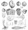 Характерные представители фауны силура на дне моря — членистоногие: Eurypterus (маленькие экземпляры внизу) и Pterygotus , достигающие 2 м в длину (вверху).