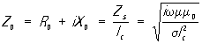Для проводников при сильно выраженном С.-э., когда радиус кривизны сечения провода значительно больше d и поле в проводнике представляет собой плоскую волну, вводят понятие поверхностного сопротивления проводника Zs (поверхностного импеданса). Его определяют как отношение комплексной амплитуды падения напряжения на единицу длины проводника к комплексной амплитуде тока, протекающего через поперечное сечение скин-слоя единичной длины. Комплексное сопротивление на единицу длины проводника: