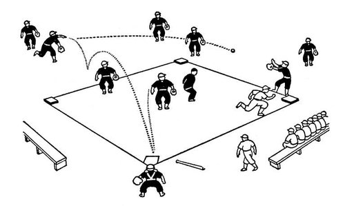 Бейсбол (англ. baseball, от base — база, основание и ball — мяч), спортивная игра с мячом и битой, напоминающая русскую лапту. Появилась в США в начале 19 в. Первый официальный матч был проведён в 1820 в Нью-Йорке. В 1845 создан первый профессиональный клуб. Распространена в США, Канаде, Мексике, Австралии, Японии. Игра ведётся 2 командами по 9 чел., на площадке в форме ромба со сторонами в 90 футов (27,4 м) и «базами» («домами») по всем его углам. Игроки атакующей команды, по очереди стоя у «базы», отбивают битой бросаемый им мяч и во время его полёта перебегают от одной «базы» к другой. Игроки защищающейся команды стараются поймать мяч и «запятнать» им перебегающего противника. Когда это удаётся сделать 3 раза, команды меняются ролями. Выигрывает команда, имеющая большее количество очков (наибольшее число перебежек через все «базы» в свой «дом») после 9 таких смен. В США, Японии, ЧССР и др. распространён также софтбол — упрощённый вариант Б., игру в который можно проводить в помещении и на небольших полях; популярны такие разновидности Б., как крикет в Англии, песаполо в Финляндии, ойна в Румынии и др.