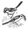 Сорокопуты (Lanius), род птиц семейства сорокопутовых отряда воробьиных. Голова большая. Клюв на вершине с крючком и зубцом перед вершиной. Хвост длинный. Оперение рыхлое, чаще серых тонов в сочетании с белым и чёрным, реже с рыжим. Самцы и самки окрашены различно. 23 вида. Распространены С. в Европе, Африке, Азии и Северной Америке. В СССР 10 видов. Наиболее широко распространены серый, или большой, С. (L. excubitor), сорокопут-жулан (L. collurio), сибирский жулан (L. cristatus) и чернолобый, или малый, С. (L. minor). Избегая сплошных лесов, С. селятся в лесотундре, на опушках леса, на полянах, в степи или пустыне с зарослями кустарника или отдельными деревьями. Гнёзда в кустах, часто колючих, или на деревьях. В кладке 4—6 яиц. Питаются насекомыми, грызунами, птенцами мелких птиц. Некоторые С. запасают пищу, накалывая добычу на сучки или колючки.