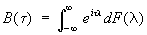 где F (l) — монотонно неубывающая функция l (а интеграл справа — это интеграл Стилтьеса); если же В (t) достаточно быстро убывает при |t|®¥ (как это чаще всего и бывает в приложениях при условии, что под X (t) понимается на самом деле разность X (t) — m), то интеграл в правой части (1) обращается в обычный интеграл Фурье: