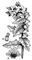 Белена черная: цветоносный побег; а — развернутый венчик с тычинками; б — плод.