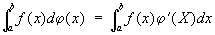 , где «интегрирующая функция» j(x) есть функция с ограниченным изменением (см. Изменение функции). Если j(x) дифференцируема, то С. и. выражается через обычный интеграл: