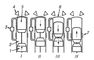 Рис. 1. Схема двигателя внешнего сгорания: 1 — горячая полость; 2 — нагреватель; 3 — поршень-вытеснитель; 4 — регенератор; 5 — охладитель; 6 — холодная полость; 7 — рабочий поршень; 8 — наружное уплотнение; 9 — зубчатые колеса, синхронизирующие работу поршней; 10 — ромбический механизм.