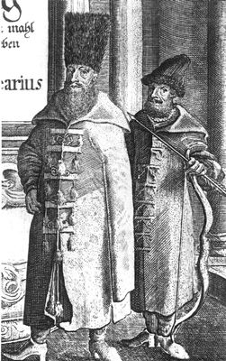 Русский боярин. Титульный лист из книги Олеария «Описание путешествия в Московию». Издание 1656.
