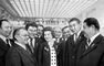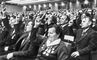 Первый секретарь ЦК СЕПГ Е. Хонеккер (в центре) и председатель Государственного совета ГДР В. Штоф (второй слева) среди делегатов съезда.