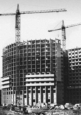 Строительство одного из экспериментальных жилых домов в 1974 в Тропарёве. Москва.