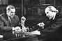 В. Э. Мейерхольд и В. В. Маяковский на репетиции «Бани» В. В. Маяковского. Театр имени Вс. Мейерхольда. 1930.