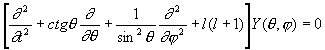получающегося при разделении переменных в Лапласа уравнении в сферических координатах r, q, j. Общий вид решения:
