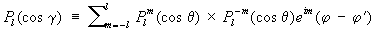 где cos g = cos q cos q‘ + sinq sinq' cos (j —j’), g — сферическое расстояние точки (q, j) от точки (q', j’).