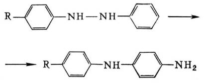В нафталиновом ряду Б. п. может происходить в отсутствие кислот. Б. п. осуществляется и в том случае, если гидразобензол содержит различные заместители в бензольных ядрах. Однако, если заместитель находится в пара-положении, происходит полубензидиновая, или семидиновая, перегруппировка с образованием аминодифениламина: