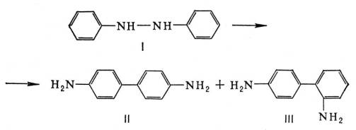 Бензидиновая перегруппировка, превращение гидразобензола (I) под действием разбавленных минеральных кислот в 4,4'-диаминодифенил, или бензидин (II); один из видов внутримолекулярной перегруппировки. Одновременно образуется небольшое количество 4,2'-диаминодифенила, дифенилина (III):