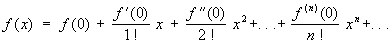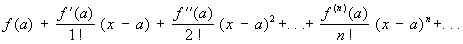 где f (x) — функция, имеющая при х = а производные всех порядков. Во многих практически важных случаях этот ряд сходится к f (x) на некотором интервале с центром в точке а: