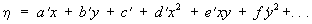 где aijkn — редукционные постоянные пластинки, m — звёздная величина, с — характеристика спектрального класса звезды (аналогичная зависимость и для координаты h). Вид используемого при определении координат небесного светила редукционного уравнения зависит от качества поля астрографа и поставленной задачи. Так, в случае расположения определяемого светила и опорных звёзд на небольшой части астронегатива ограничиваются лишь первыми тремя (линейными) членами уравнений.