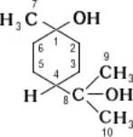 Терпингидрат, кристаллогидрат цис-терпина [цис-формы n-ментандиола-1,8(I) — двухатомного спирта класса терпенов]; бесцветные горьковатого вкуса кристаллы, без запаха, плохо растворимы в воде и эфире, хорошо — в спирте.