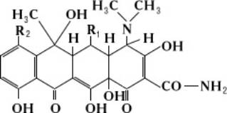 Хлортетрациклин: R1 = H; R2 = Cl;