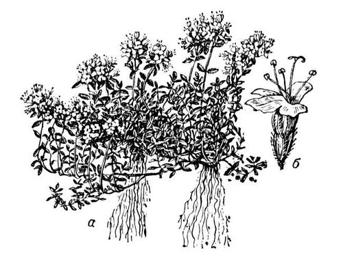 Тимьян, чабрец, чебрец (Thymus), род растений семейства губоцветных. Полукустарнички с деревянистыми стеблями (часто лежачими) и травянистыми ветвями. Листья супротивные, мелкие, большей частью черешчатые. Цветки большей частью лиловые, в головчатых или иных соцветиях. Плод из 4 орешковидных долей. Около 400 видов, в умеренном поясе Евразии и в Северной Африке. В СССР свыше 150 видов. Наиболее распространены Т. ползучий (Т. serpyllum) — в лесной зоне по сухим песчаным местам, сосновым борам; Т. Маршаллов (Т. marschallianus) — в лесостепной и степной зонах по склонам, опушкам и полянам. Листья их содержат эфирные масла, главным образом тимол, применяемый как противоглистное, дезинфицирующее и обезболивающее средство. Жидкий экстракт и отвар из листьев используют в качестве отхаркивающего средства. Аналогично применяют произрастающий в Средиземноморье и культивируемый в СССР Т. обыкновенный (Т. vulgaris). Листья Т. используют как пряность в кулинарии, консервной и ликёро-водочной промышленности.