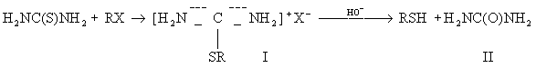 При гидролизе Т. образуются аммиак, сероводород и углекислый газ. Алкилирование Т. приводит к S-алкилпроизводным изотиомочевины (S-алкилизотиурониевым солям) (I); последние при действии щелочей распадаются с образованием меркаптанов (II):