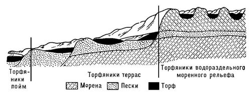 Образование торфа. Т. — предшественник генетического ряда углей (по мнению ряда учёных). Место образования Т.— торфяные болота (см. Болото), встречающиеся как в долинах рек (поймы, террасы), так и на водоразделах (рис. 1).
