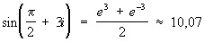 Синус и косинус комплексного аргумента могут принимать действительные значения, превосходящие 1 по абсолютной величине. Например: