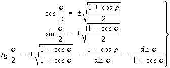 Формулы для cos2j и sin2j можно использовать для нахождения значений Т. ф. половинного аргумента: