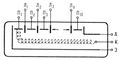 В наиболее распространённом — линейном десятикратном Т. (см. рис.) на экран подаётся постоянный отрицательный (относительно Vk) потенциал (Vэ = 50—100 в), а на анод и каждую из пластин — постоянный положительный (относительно Vk) потенциал Va » Vп » 100 в. Если потенциалы всех лопаток близки к Va, то электронный пучок (сила тока в нем несколько ma) входит в первую ячейку Т. (образованную краем экрана, 1-й пластиной и соседней с ней лопаткой) и, попадая на пластину, замыкает её электрическую цепь с цепью катода. Если теперь понизить потенциал 1-й лопатки примерно до Vэ, пучок попадёт во 2-ю ячейку (на 2-ю пластину) и т.д. Таким образом, пучок можно направить на любую из пластин.