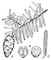 Тсуга канадская: а — ветвь с женской шишкой; б — лист; в — семенная чешуя с внутренней (с двумя семенами) и внешней стороны.