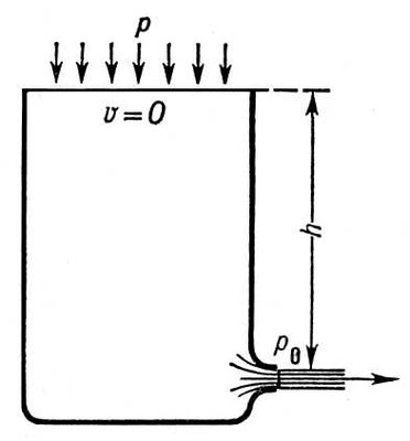 т. е. скорость жидкости в выходном отверстии такова же, как при свободном падении частиц жидкости с высоты h.