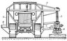 Схема турнодозера на базе гусеничного трактора: 1 — опорные рамы; 2 — консольные фермы; 3 — трособлочная система; 4 — рельсозахватный механизм; 5 — шарнирный параллелограмм; 6 — контргруз.