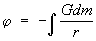 Гравитационный потенциал какого-либо тела или системы тел может быть записан в виде суммы потенциалов частичек, слагающих тело или систему (принцип суперпозиции), то есть в виде интеграла от выражений (3):
