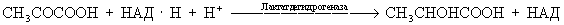При гликолизе или молочнокислом брожении пируват не подвергается анаэробному декарбоксилированию, а восстанавливается в молочную кислоту лактатдегидрогеназой: