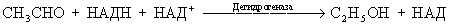 Различие между спиртовым брожением, с одной стороны, и гликолизом или молочнокислым брожением — с другой, выявляется на стадии превращения пировиноградной кислоты (пирувата): при спиртовом брожении в клетках под влиянием пируватдекарбоксилазы образуются CO2 и уксусный альдегид, восстанавливаемый алкогольдегидрогеназой в спирт: