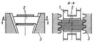 Фрикционные Б. п. с гибким звеном и раздвижными коническими шкивами (рис. 1) обеспечивают малое изменение передаточного числа при изменении нагрузки, отличаются высокой надёжностью, но имеют большие габариты. В Б. п. с гибким звеном (клиновым ремнем или специальной роликовой цепью) передаточное число изменяется: принудительным согласованным сближением одной пары конусов и раздвижением другой при помощи механизма управления (рис. 1, а); осевым перемещением одной пары конусов принудительно, а другой под действием пружины (рис. 1, б); изменением межосевого расстояния (А) при одном подпружиненном и другом закрепленном шкиве (рис. 1, в).