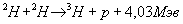 Именно названные реакции представляют наибольший интерес для проблемы У. т. с. В особенности привлекательна вторая реакция, сопровождающаяся большим энерговыделением и протекающая со значительной скоростью. Тритий радиоактивен (период полураспада 12,5 лет) и не встречается в природе. Следовательно, для обеспечения работы предполагаемого термоядерного реактора, использующего в качестве ядерного горючего тритий, должна быть предусмотрена возможность воспроизводства трития. С этой целью рабочая зона рассматриваемой системы может быть окружена слоем лёгкого изотопа лития, в котором будет идти процесс воспроизводства