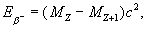 где М — массы нейтральных атомов. В случае b+-распада нейтральный атом теряет один из электронов в своей оболочке, энергия Б.-р. равна:
