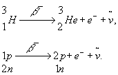 Очевидно, что этот процесс сводится к b--распаду связанного (ядерного) нейтрона. В этом случае b-радиоактивное ядро трития превращается в ядро следующего в периодической таблице элемента — ядро лёгкого изотопа гелия 32Не.