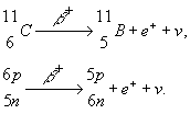 Примером b+-распада может служить распад изотопа углерода 11С по следующей схеме: