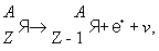 в случае b--распада. При b--распаде число протонов (Z) в ядре увеличивается на единицу, а число нейтронов уменьшается на единицу. Массовое число ядра А, равное общему числу нуклонов в ядре, не меняется, и ядропродукт представляет собой изобар исходного ядра, стоящий от него по соседству справа в периодической системе элементов. Наоборот, при b+-распаде число протонов уменьшается на единицу, а число нейтронов увеличивается на единицу и образуется изобар, стоящий по соседству слева от исходного ядра. Символически оба процесса Б.-р. записываются в следующем виде: