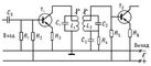 Транзистор T4, включенный по схеме с общей базой, соединён последовательно с транзистором T3, образуя с ним т. н. каскодный усилит. каскад (с широкой полосой пропускания и повышенной линейностью).